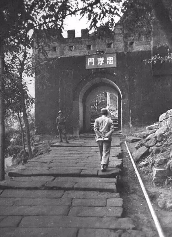 1942年,重庆,菜贩和苦力们通过重庆的南纪门。