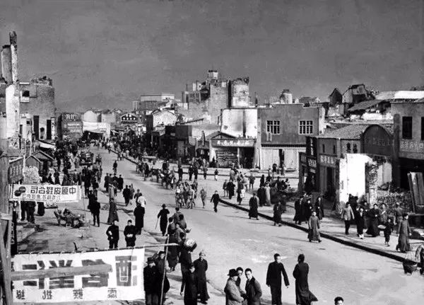 抗战时期,重庆,小什字。从朝天门往上走就是小什字,解放前小什字是比较闹热的,这里有许多大的银行、当铺。