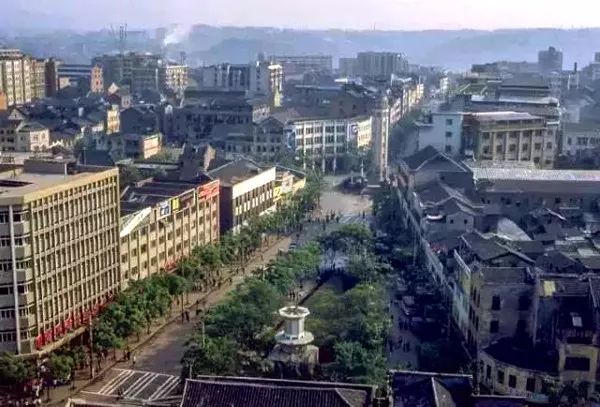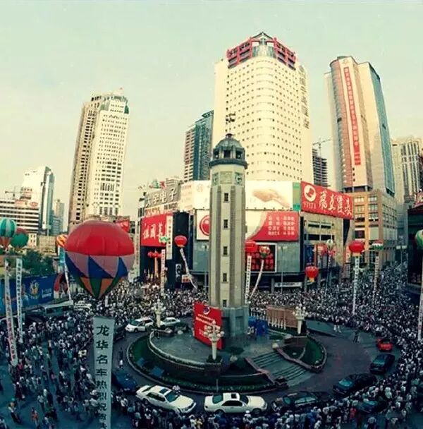 1990年代,重庆,解放碑八一路西段,好吃街入口。