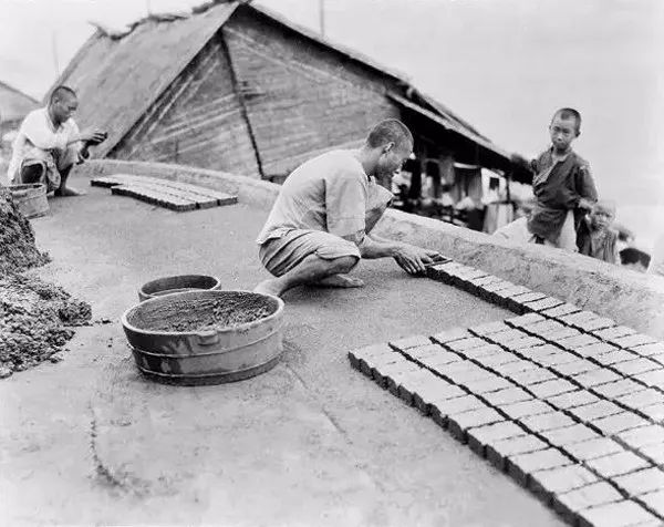 1917年,重庆,人们在做煤块。美国著名中国专家,社会经济学家Sidney David Gamble/摄。