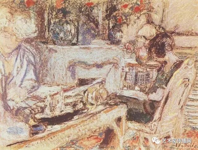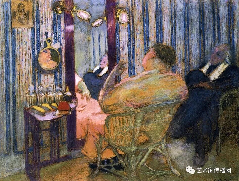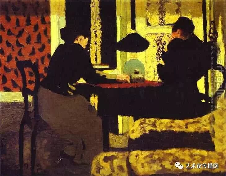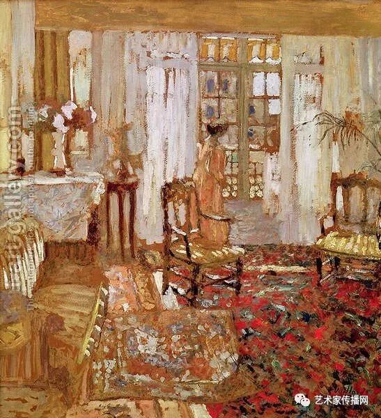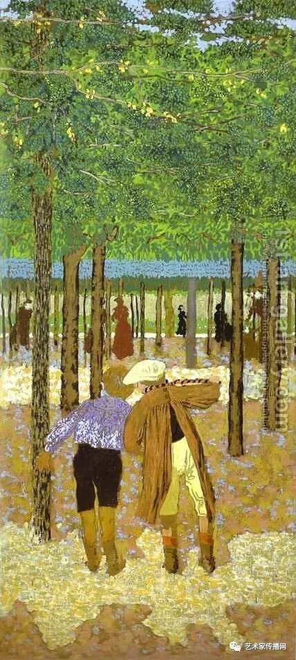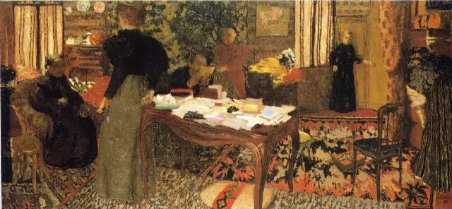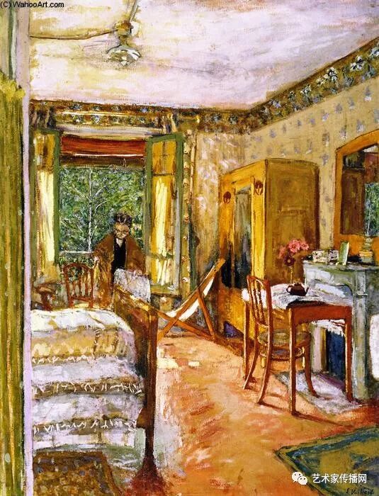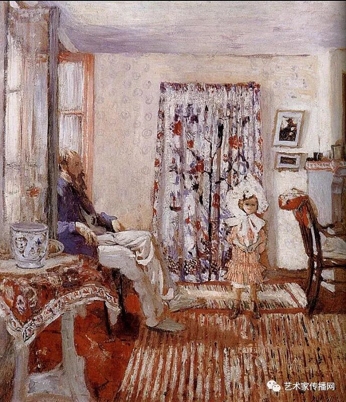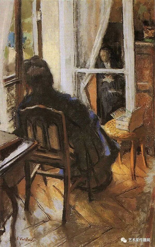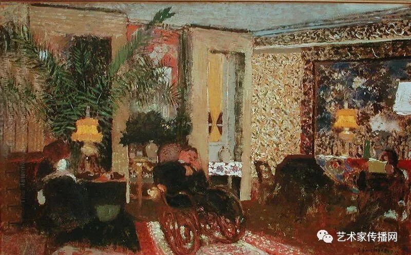 维亚尔是纳比派画家,也是内景主义画派领袖之一,他运用印象派技法来描绘亲戚朋友在室内、巴黎花园里和街道上的日常生活。