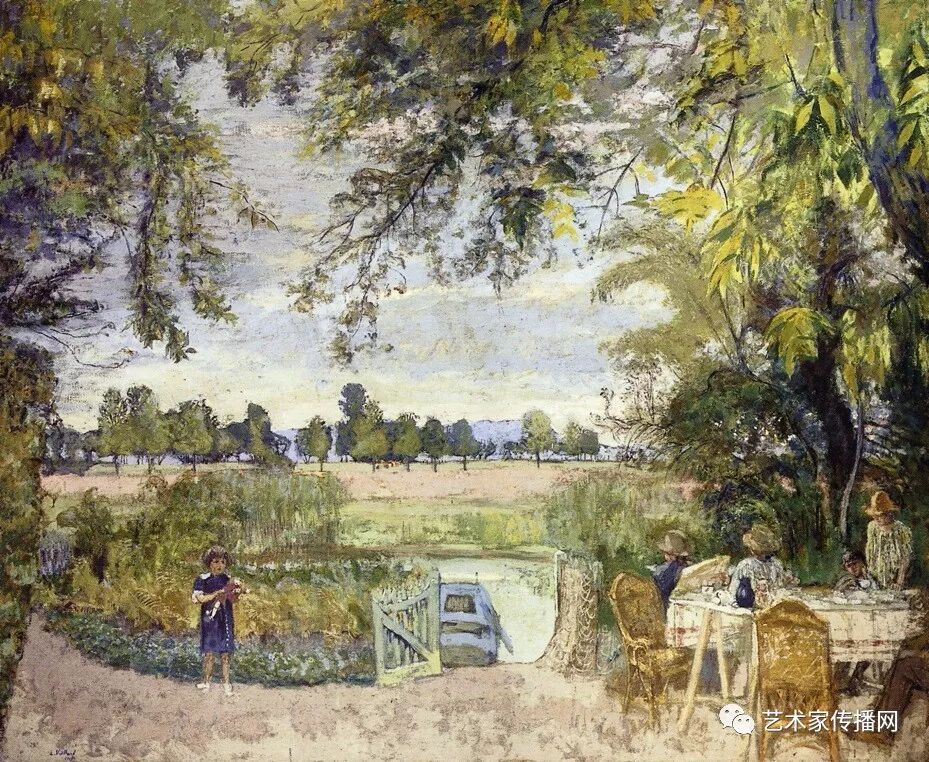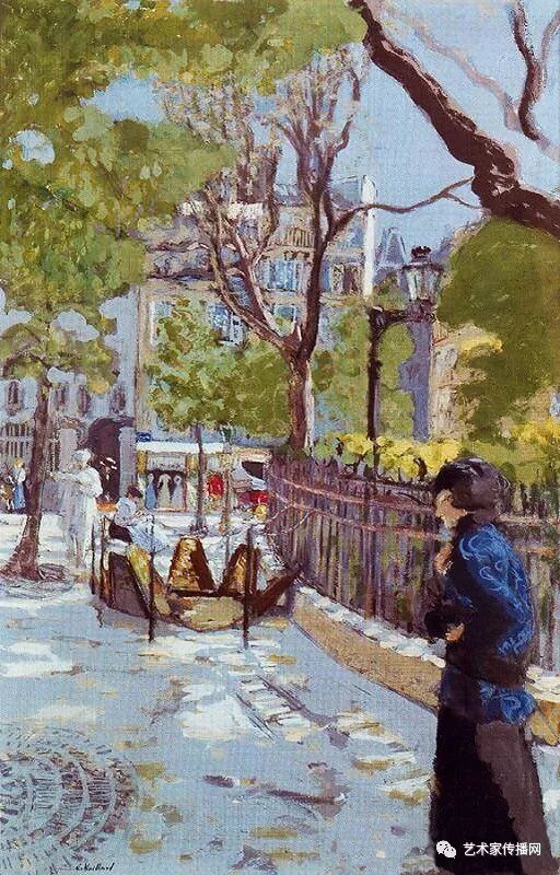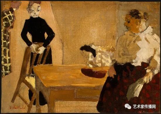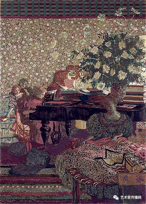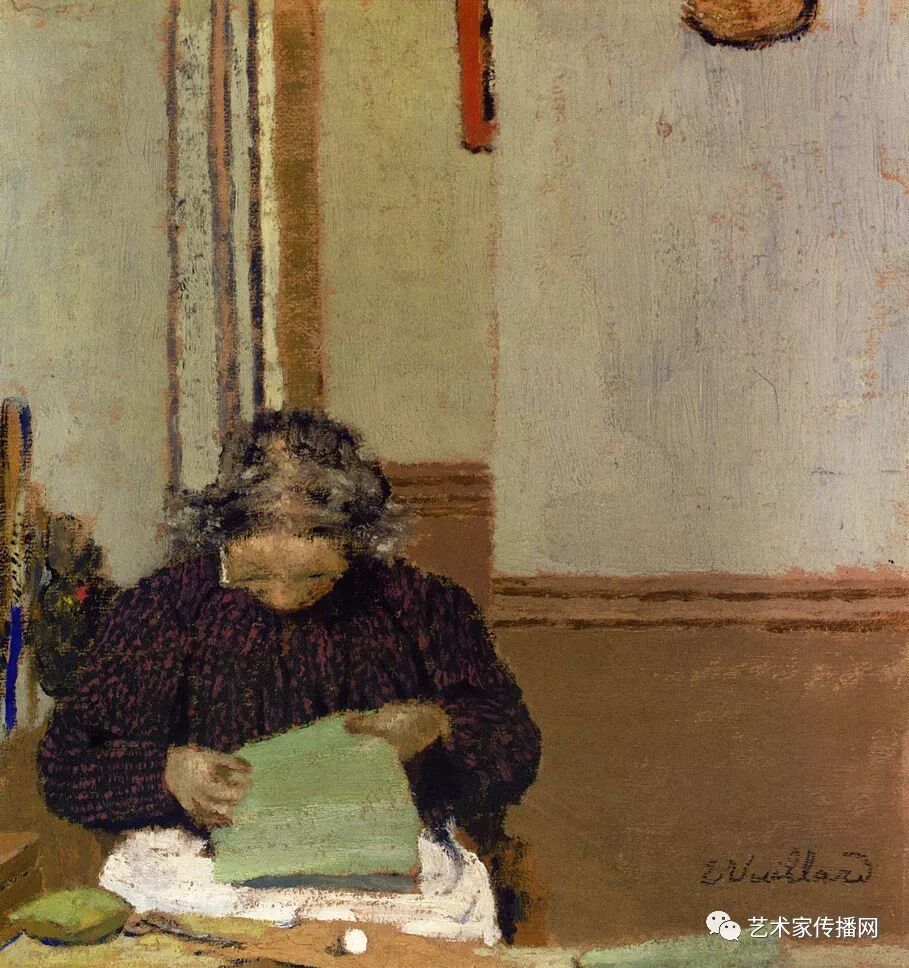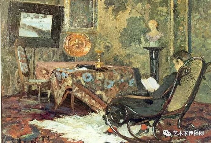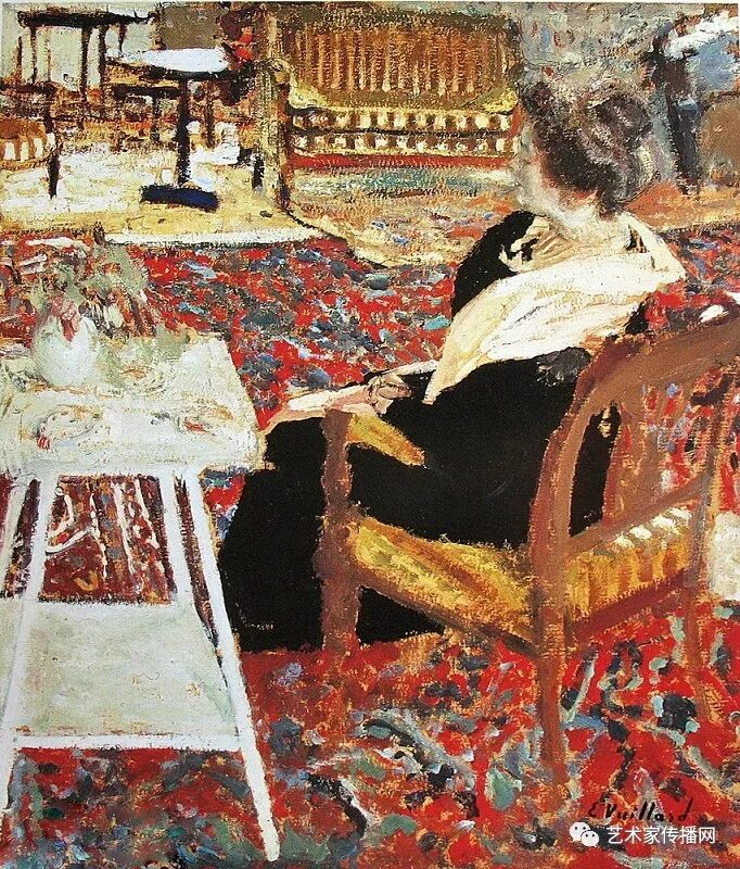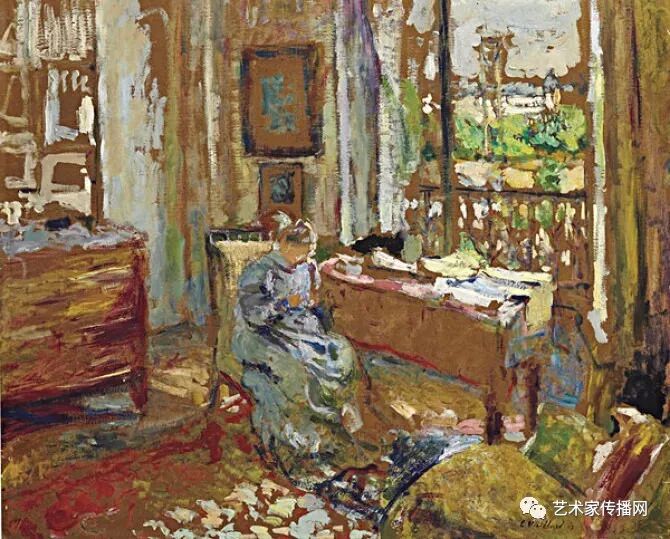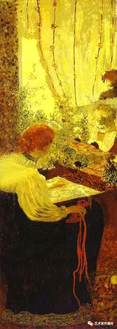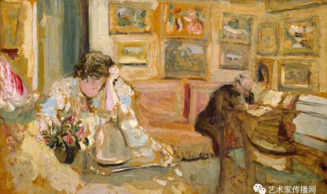 维亚尔是纳比派画家,也是内景主义画派领袖之一,他运用印象派技法来描绘亲戚朋友在室内、巴黎花园里和街道上的日常生活。