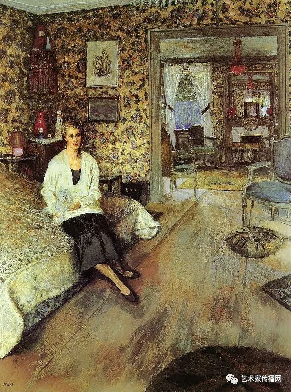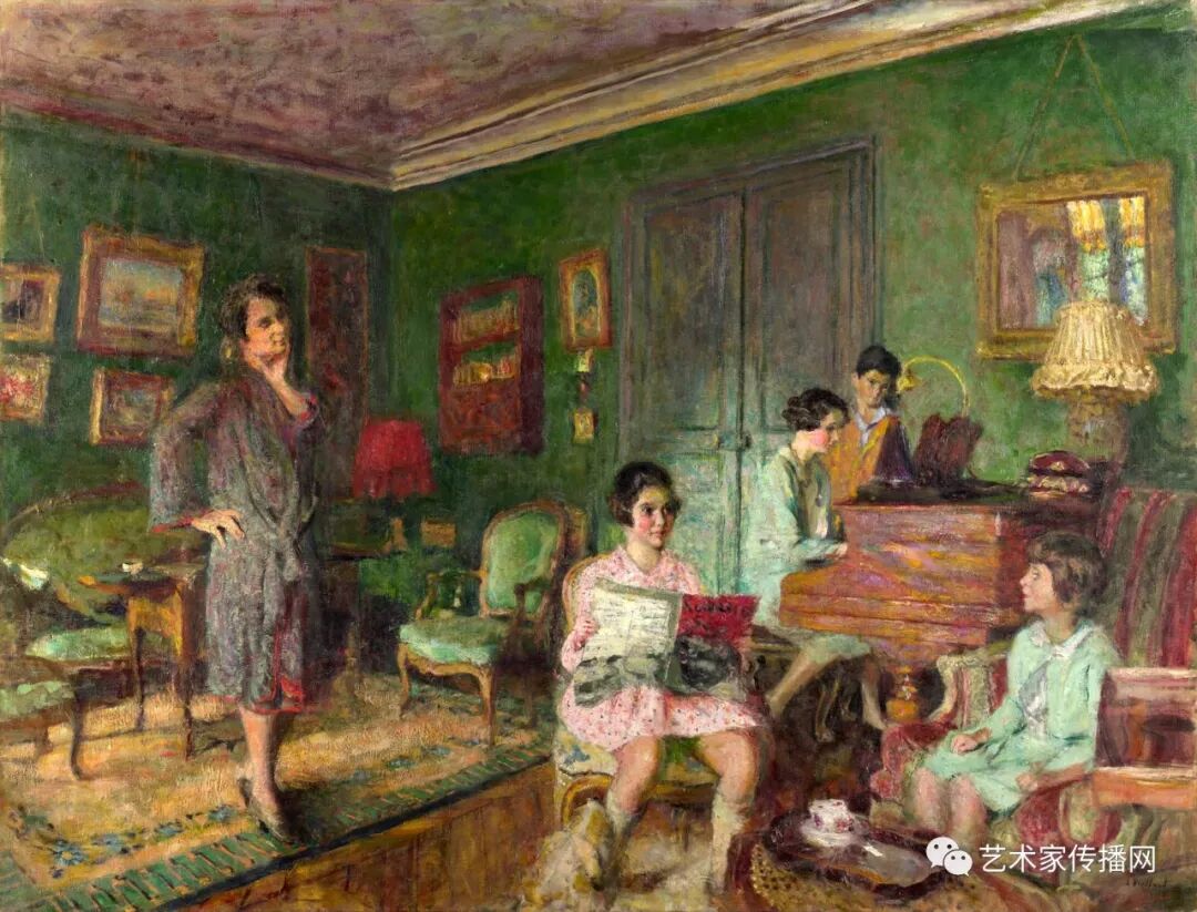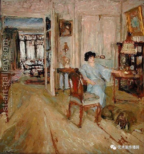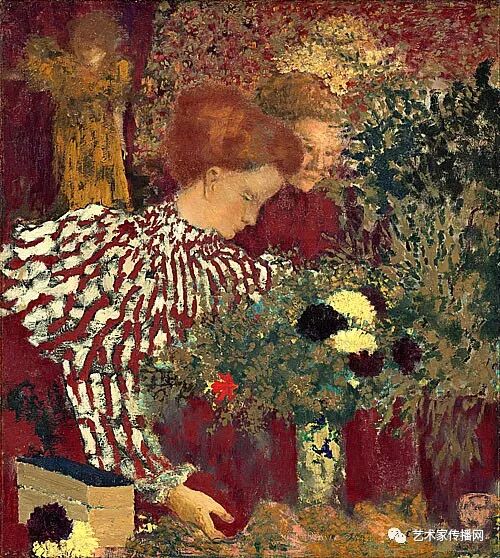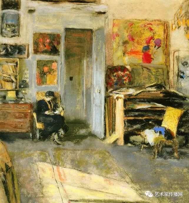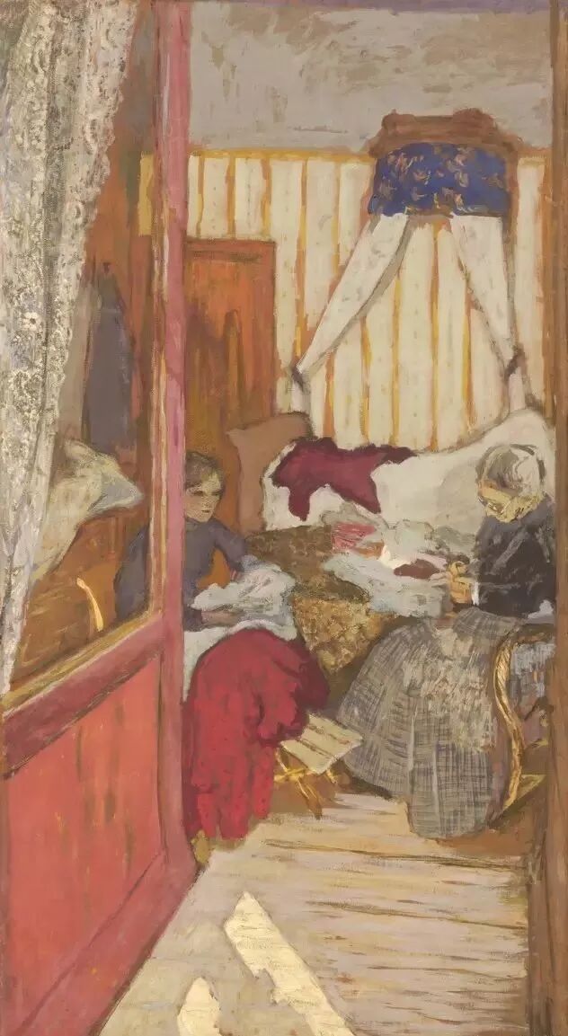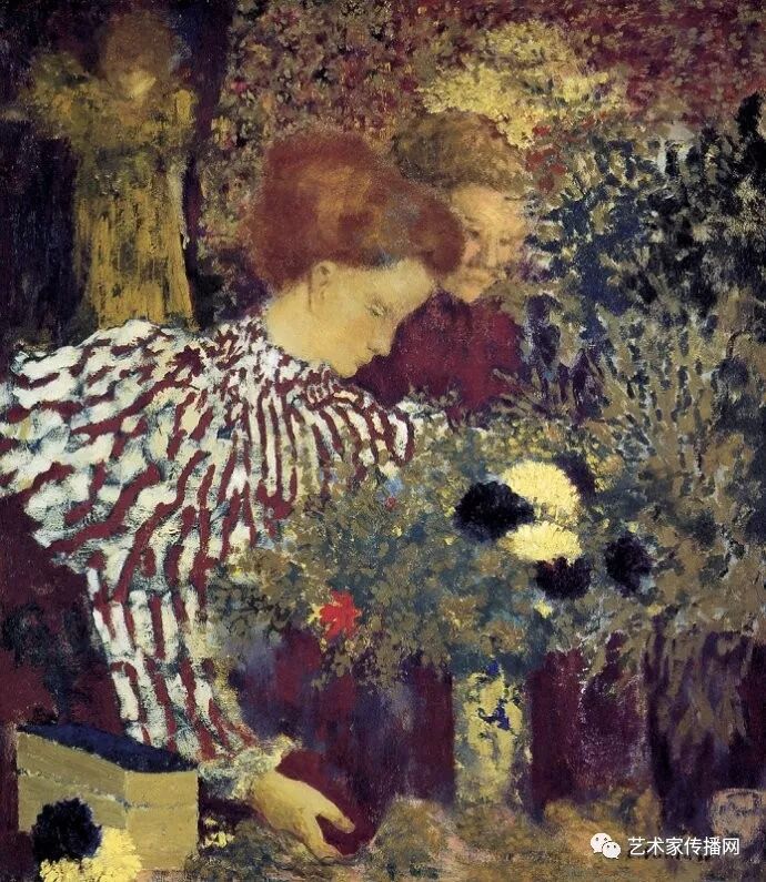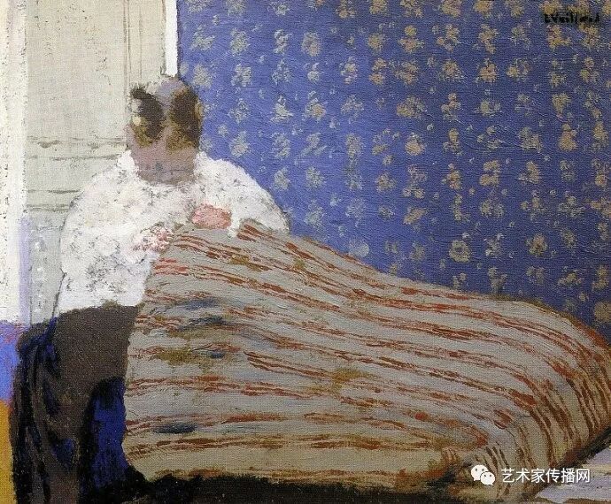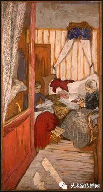 维亚尔是纳比派画家,也是内景主义画派领袖之一,他运用印象派技法来描绘亲戚朋友在室内、巴黎花园里和街道上的日常生活。