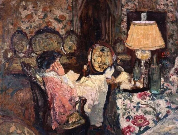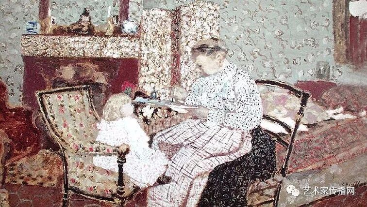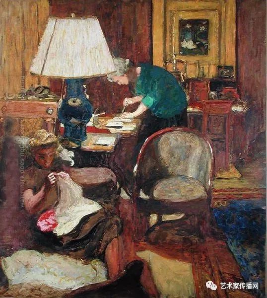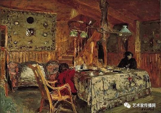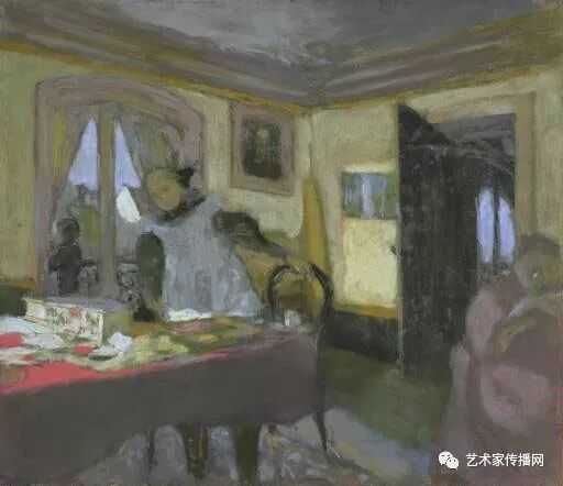 到了20世纪初,维亚尔开始抛弃自己原来的观念和画法,创造了自己独特的室内情景画。他从夏尔丹和荷兰画派的维米尔的风格画中得到启迪,以印象主义的色彩和笔法再糅合象征主义的构图,来描绘温暖的家庭室内情景。