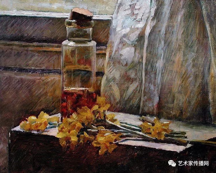 而从记忆出发创作,关注画面的整体氛围。画面好像被笼罩在薄纱之中,物质性削弱而暗示性加强。