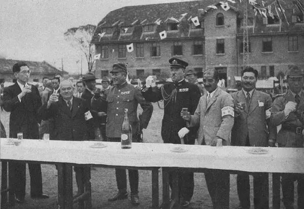 1940年1月,日军和汉奸在青岛召开成立伪中央政府会议,汪精卫和日本华北派遣军海军最高指挥官野村会面。