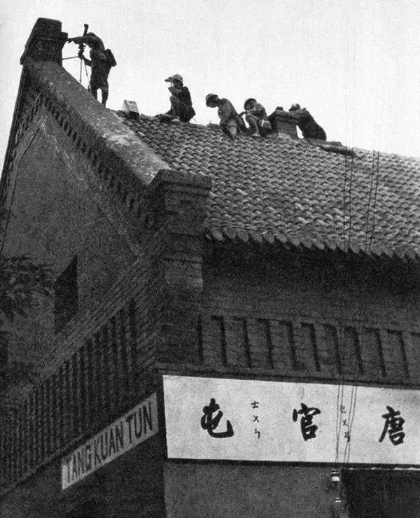 1937年9月4日,津浦线唐官屯,在屋顶上观察前哨的日军士兵。