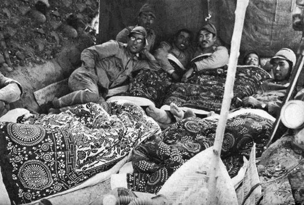 1938年5月18日,由南京北上的日军雄胁坂部队士兵在野外宿营。
