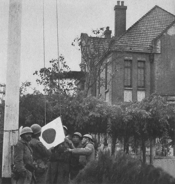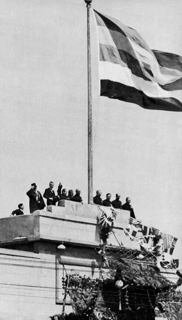 1937年11月23日,日军占领苏州后,在日本领事馆举行升旗仪式。