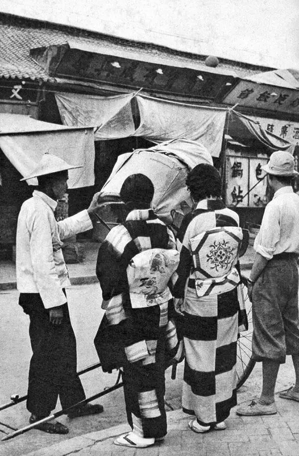 1939年,济南街头,搭乘黄包车的日本妇女。