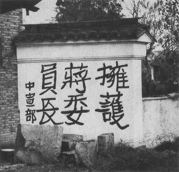 1937年11月16日,江苏昆山,墙壁上写着“拥护蒋委员长”。