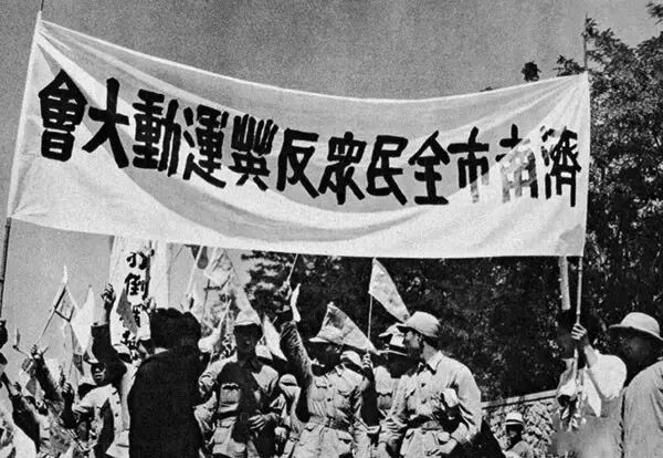1939年6月23日,日军组织市民进行的“济南市全民众反英运动大会”。