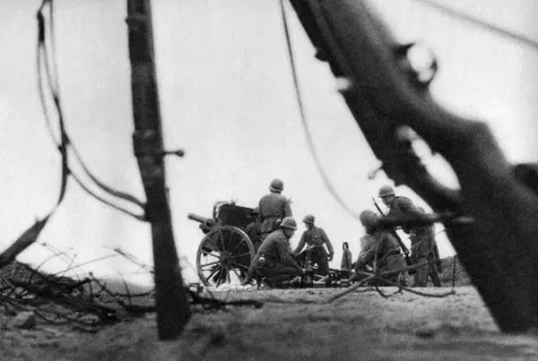 1937年12月12日,日军对南京发动总攻的第三天,中华门前进攻的日军炮兵部队。