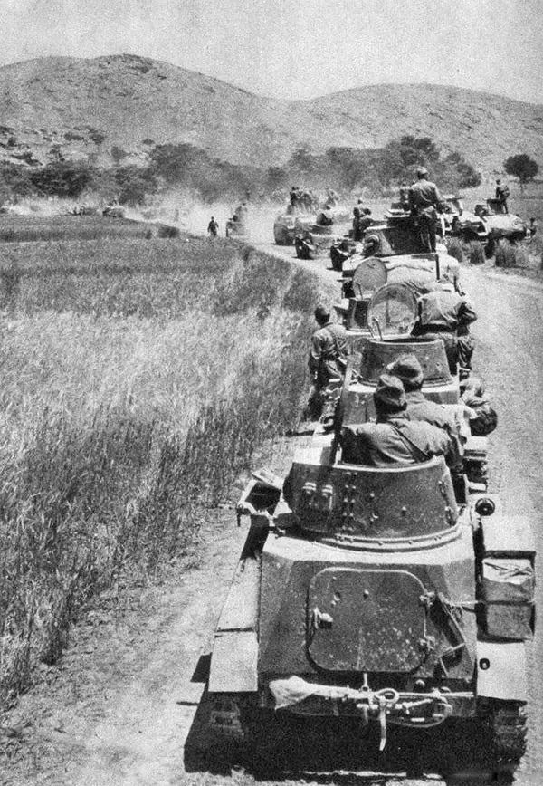 1938年5月19日,向徐州九里山行进的日军今田战车队。