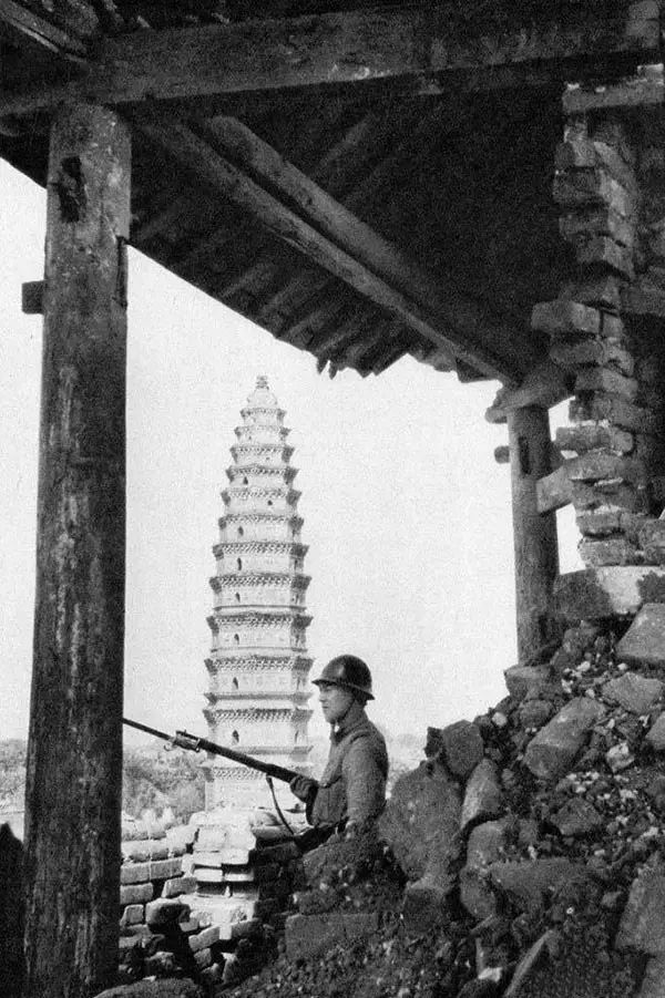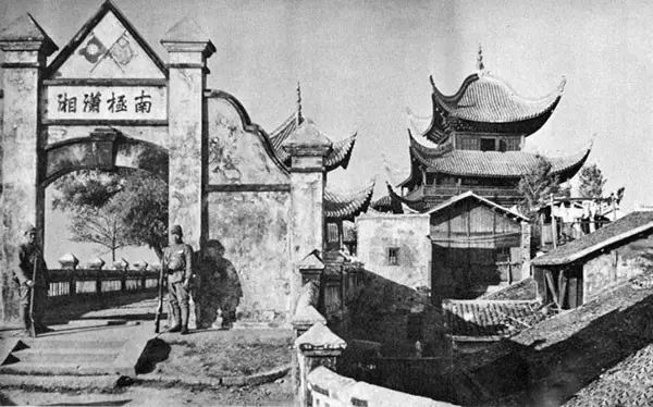 1938年11月23日,湖南岳州,岳阳楼南门戒备的日军士兵。