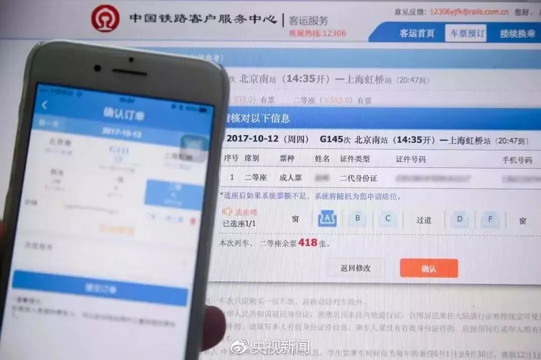 12306官方网站、APP购票