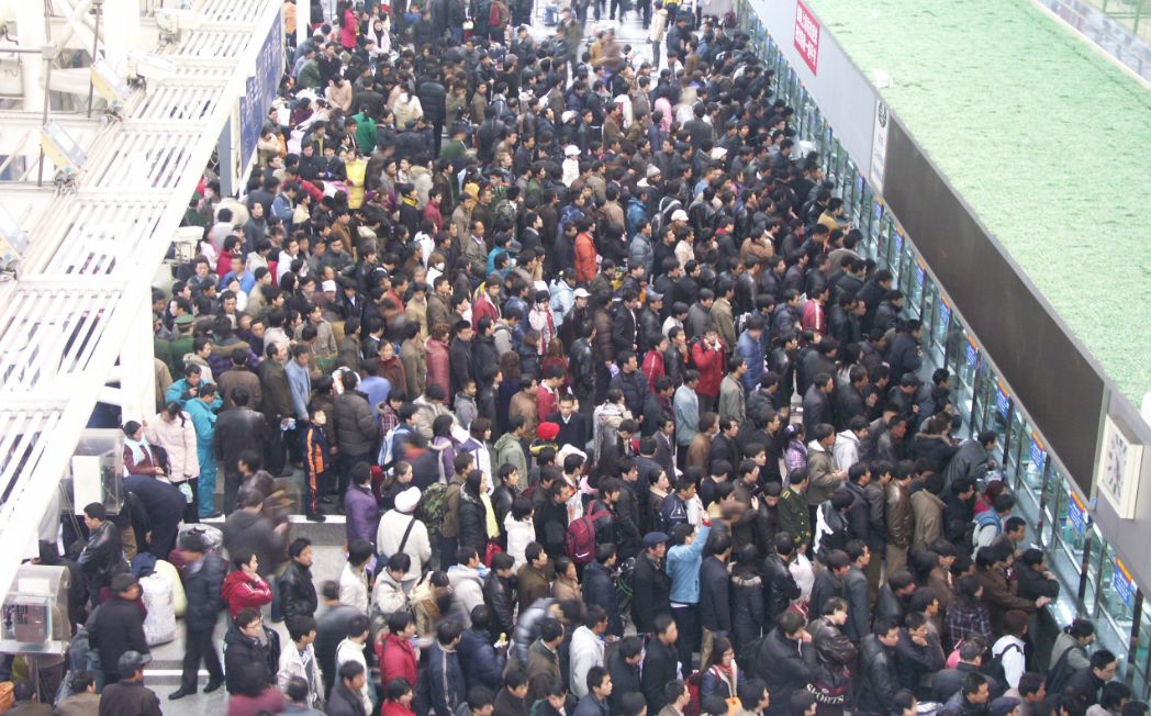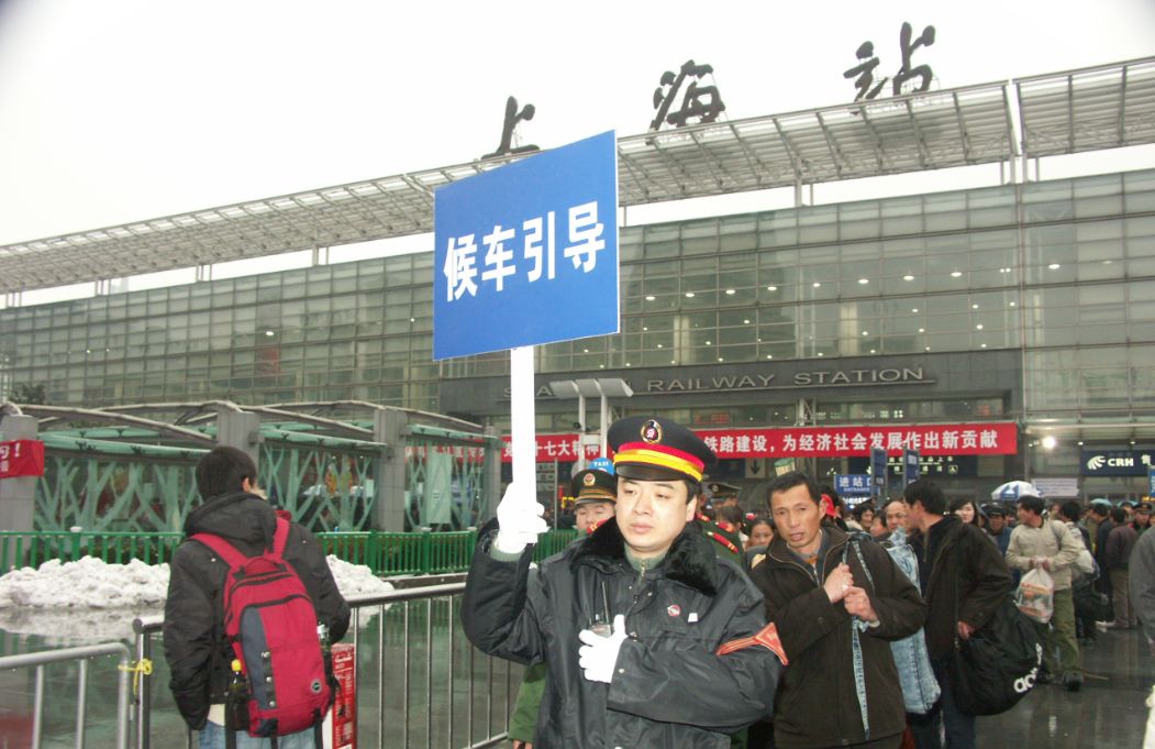 2008年,上海站工作人员引导旅客进入地下车库候车。