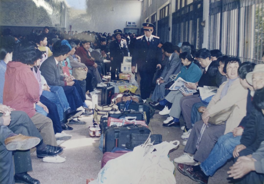 上世纪90年代,旅客在镇江站老候车室候车。