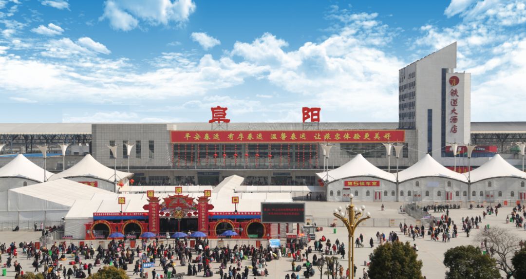 21世纪初,阜阳站春运根据出行方向,搭建彩色分区候车雨棚。