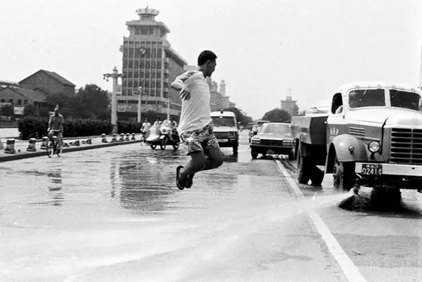 1984年,西安新城广场,戏水一跃。赵利文/摄。