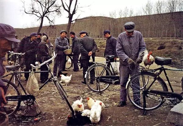 1985年,西安,古城墙边的鸡鸭市场。久保田博二/摄。