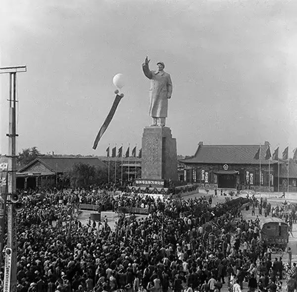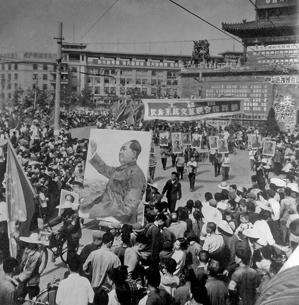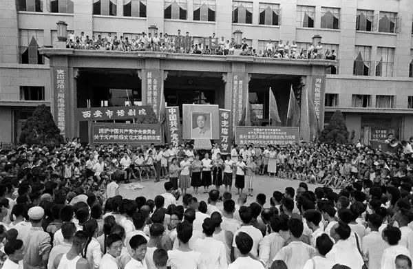1966年5月20日,西安邮电大楼前,举行欢呼“文化大革命《十六条》”发表 ,这标志着文革正式爆发。王凌/摄。
