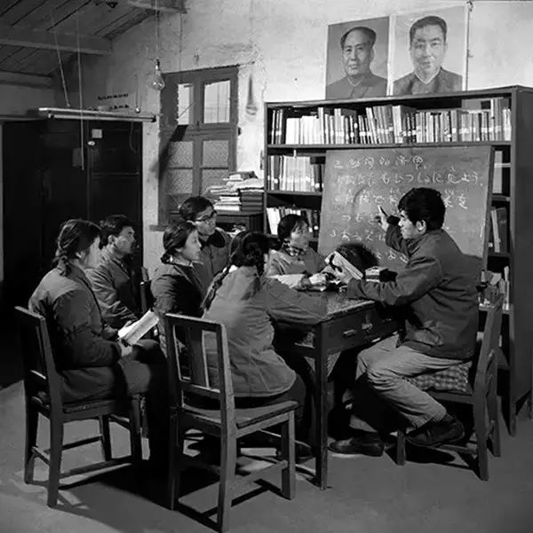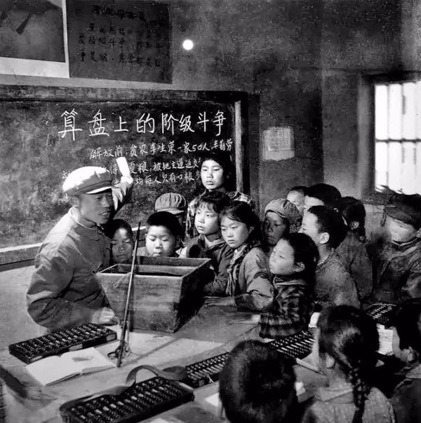 1975年,西安临潼县桑园小学教师给学生们上阶级斗争算术课。