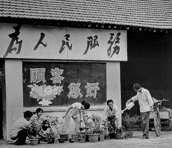 1975年8月,西安市解放路上的国营旅社门前一景。刘一/摄。
