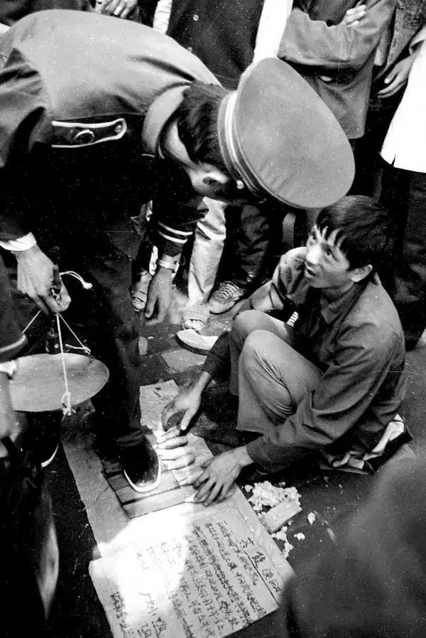 1989年,西安,卖菜刀的小贩遭遇警察执法。赵利文/摄。