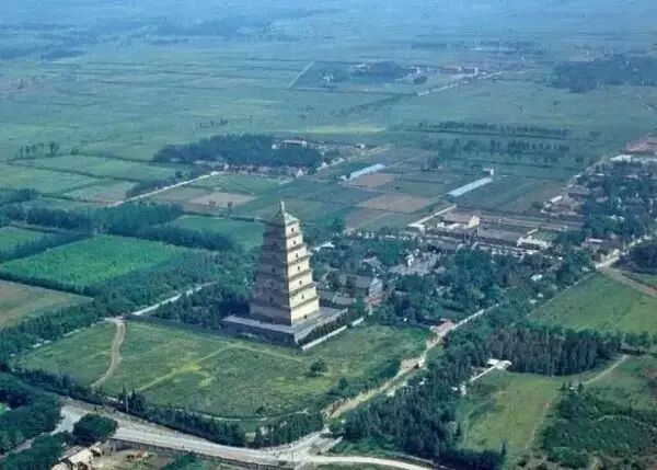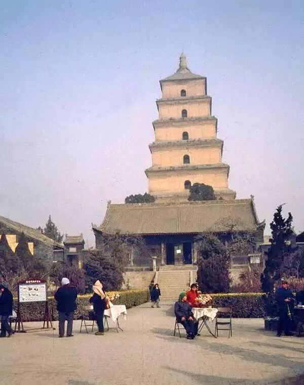 1980年代,西安,那时的大雁塔,农田环绕,绿意盎然,显得闲逸安静。