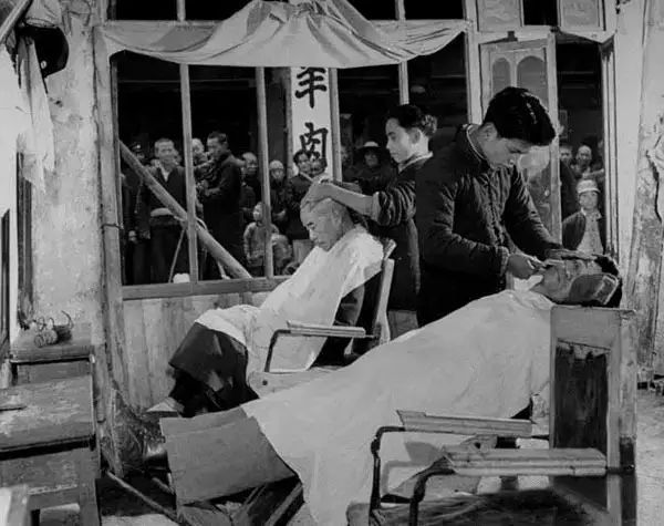 1947年,西安临潼县,理发店里剃头与刮脸。美国《生活》杂志记者/摄。