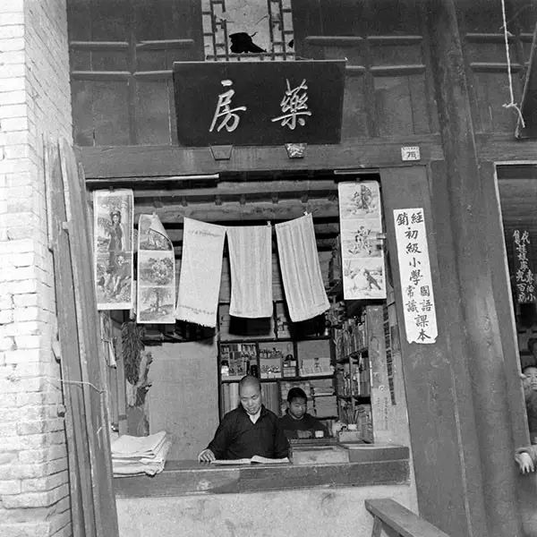 1947年,西安临潼县,药房还经销初级小学国语、常识课本。美国《生活》杂志记者/摄。