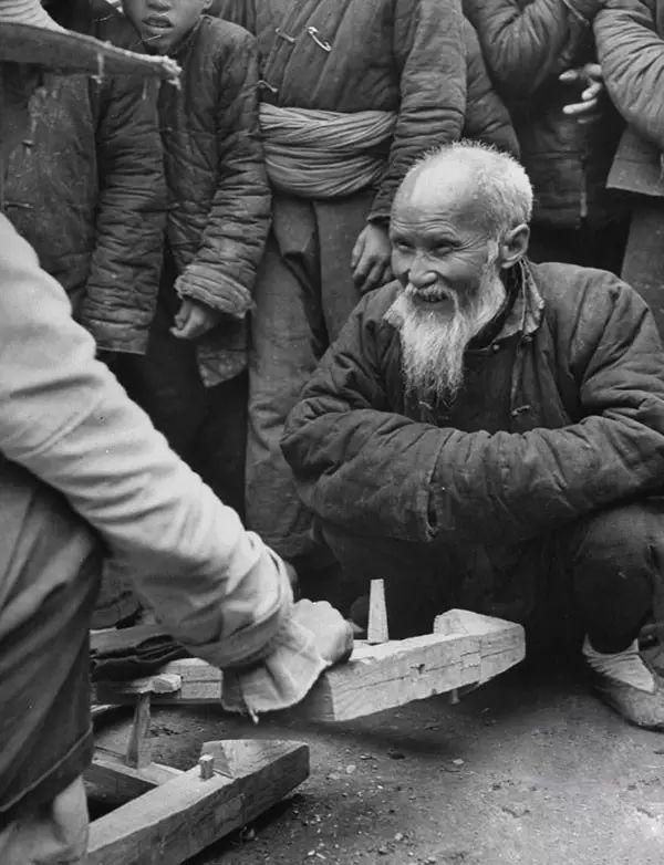 1947年5月,西安临潼县,集市上老农和木匠就木犁谈价格。美国《生活》杂志记者/摄。