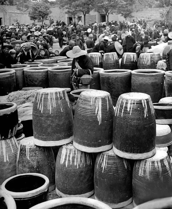 1947年5月,西安临潼县,集市上出售的水缸。美国《生活》杂志记者/摄。