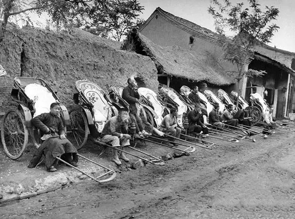 1947年,西安临潼县,人力车夫坐在路边等待顾客。美国《生活》杂志记者/摄。
