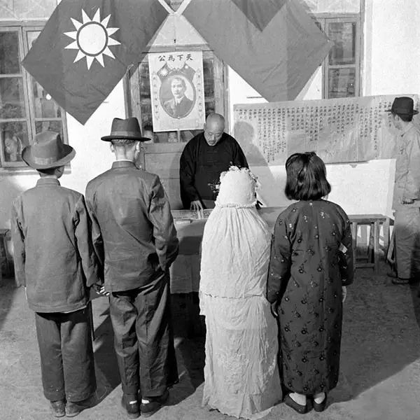 1947年5月,西安临潼县,十几岁的新婚夫妇在婚礼仪式上。美国《生活》杂志记者/摄。