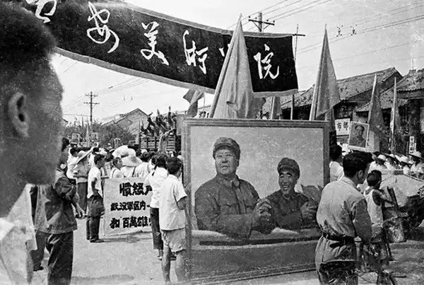 1967年,西安市南大街,西安美术学院师生在游行,声援造反派。胡武功/摄。