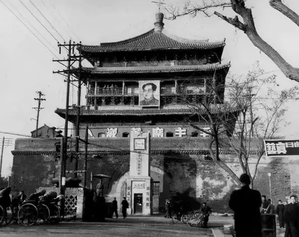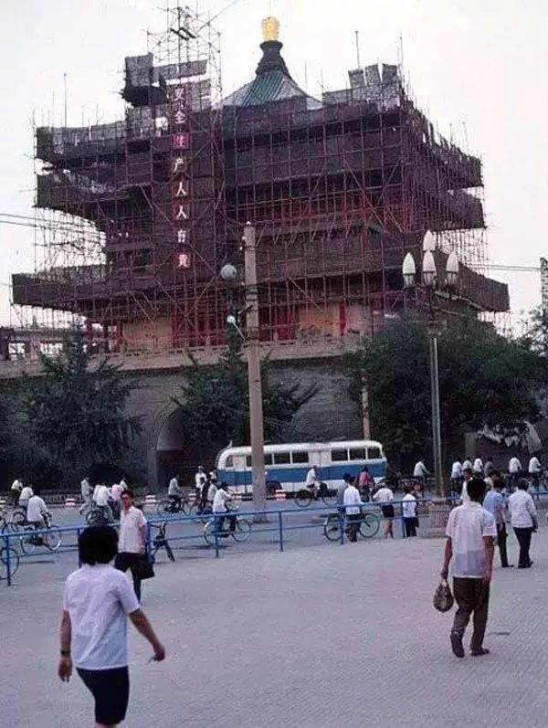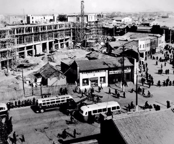 1958年春,西安市钟楼东侧正在建造的邮电大楼。