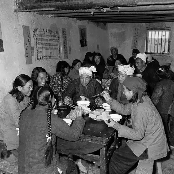 1958年冬,咸阳市(今属西安咸阳区)五星人民公社大食堂的午饭。卫王象/摄。