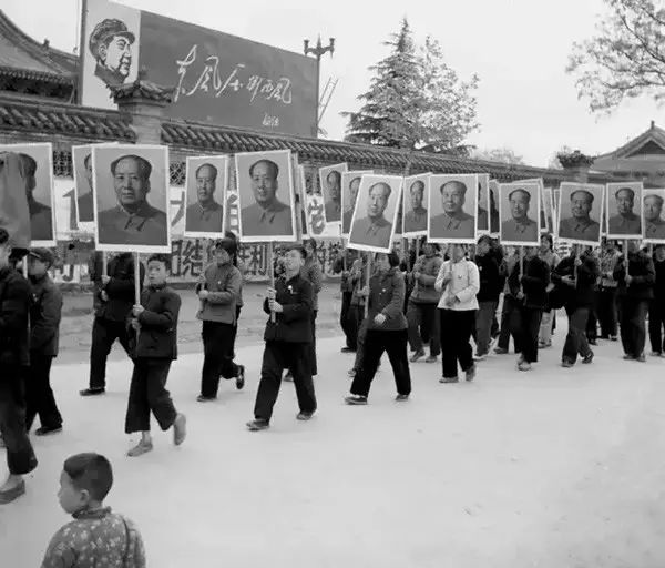 1969年4月,西安临潼县,华清中学学生游行,庆祝中共九大召开。任永健/摄。