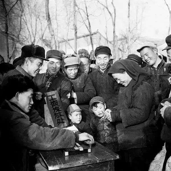 1959年1月,西安市雁塔区公社社员领工资。王凌/摄。