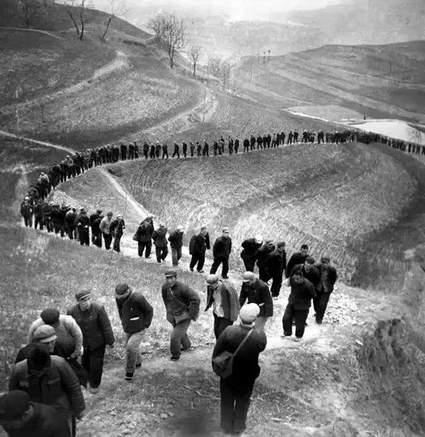 1969年12月,西安临潼县革委会组织全县公社、大队、生产队干部到零原公社参观学大寨修梯田的经验。任永健/摄。