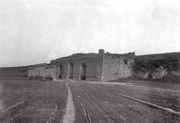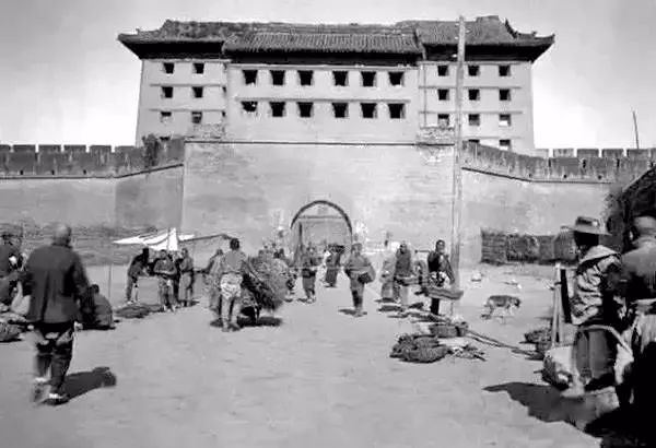 1907年,西安北城门外,出城就是农田,城墙残破,城门楼也不在了。