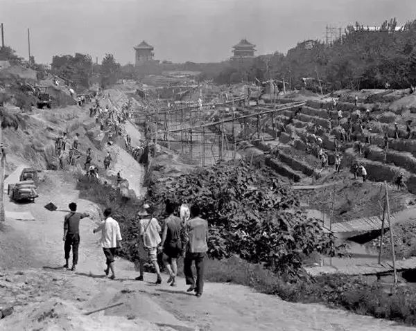 2006年,西安西门外,护城河边商铺区全部拆掉,将建立环城公园。秦岭/摄。