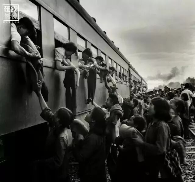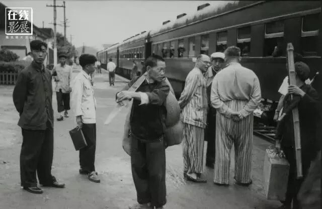 图为1956年,湖南某火车站,穿着睡衣的苏联旅行者和中国农民。