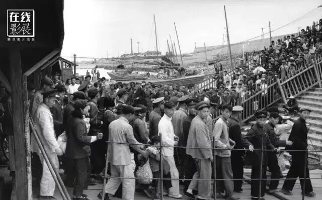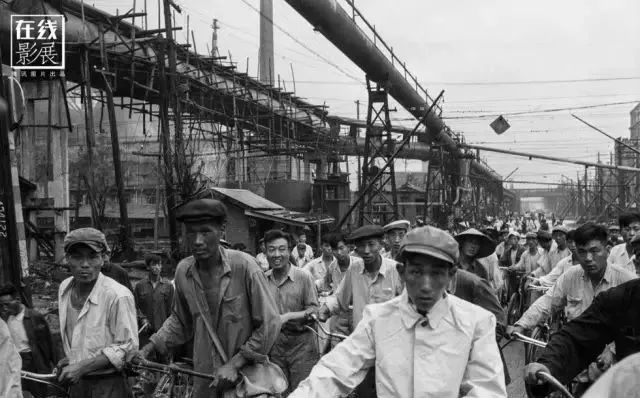 1956年,鞍山钢铁厂,工人下班时的场景。