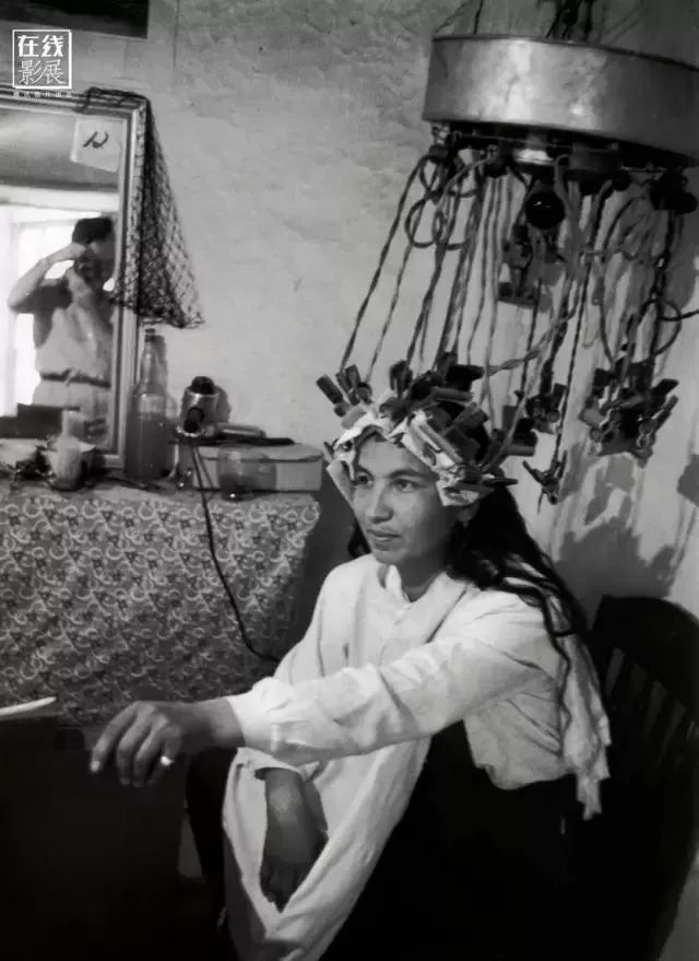 1956年,新疆乌鲁木齐,一名正在烫发的女子。理发店的镜子里倒映出摄影师的身影。