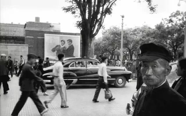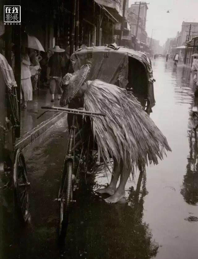 四个月里,他以观察者的身份走遍了中国东部地区,从南方的广州、上海,到北方的北京、沈阳、鞍山和长春,从西安到武汉的西北地区,还穿越戈壁沙漠到了遥远的乌鲁木齐。图为1956年,广州街头,一名穿蓑衣的车夫。