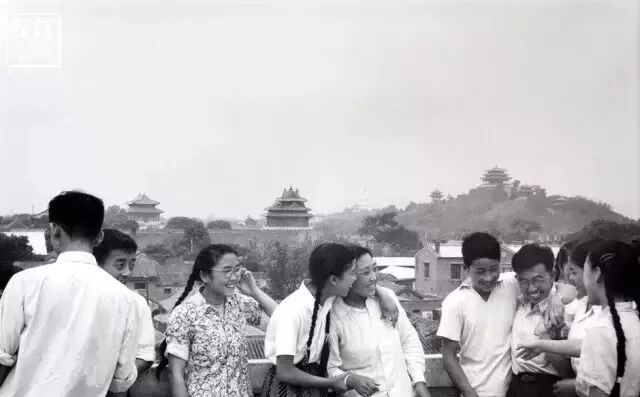 1956年,北京市第五中学的楼顶上,中学生的课间休息。