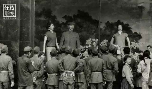 1956年,北京王府井,一群军人在欣赏商店橱窗里陈列的西式服装。